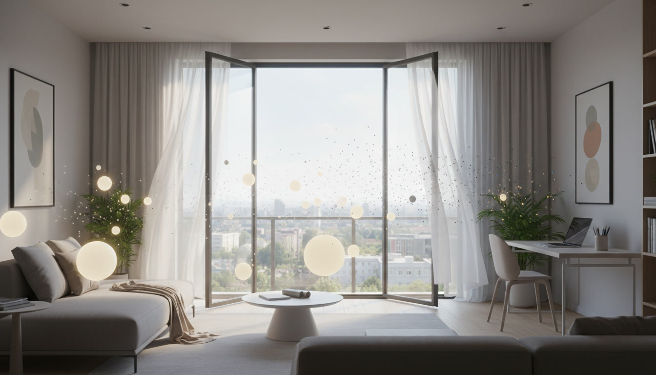 Механизм воздухообмена через окно строится на простом физическом принципе: замещении объёмов. Тяжёлый, насыщенный углекислым газом воздух выходит наружу, его место занимает свежий поток с улицы. Этот процесс быстро снижает концентрацию CO₂, убирает летучие органические соединения от новой мебели или бытовой химии, разгоняет застоявшиеся запахи. С точки зрения субъективного комфорта эффект заметен практически мгновенно. Голова перестаёт гудеть, возвращается концентрация, исчезает ощущение спёртости. Проблема кроется в том, что проветривание не фильтрует. Оно просто меняет массу воздуха. Если в комнате уже витают аэрозольные частицы, открытая створка не вытянет их все. Часть уйдёт вместе с потоком, часть осядет на поверхностях, а остальная продолжит дрейфовать в замкнутом пространстве. Особенно это заметно в помещениях с неправильной геометрией, высокими потолками или сложной системой вентиляции, где образуются застойные зоны. Воздух перемешивается, а не очищается.
